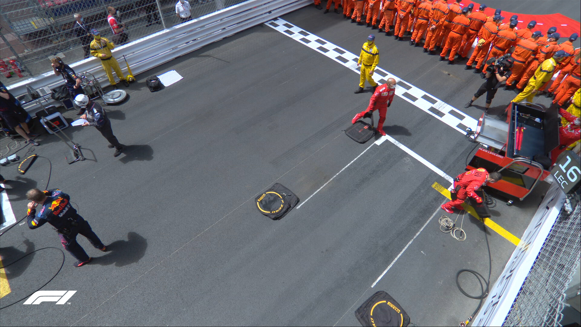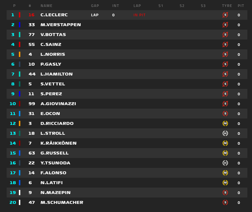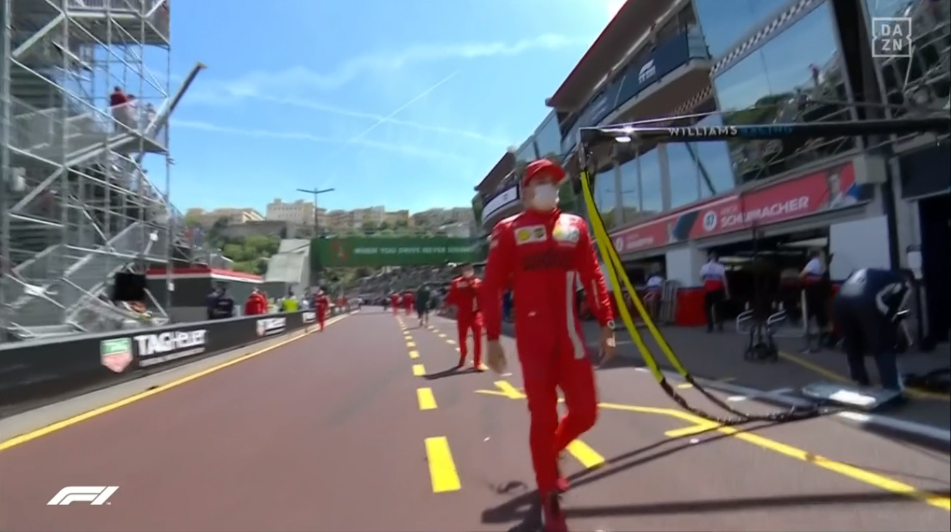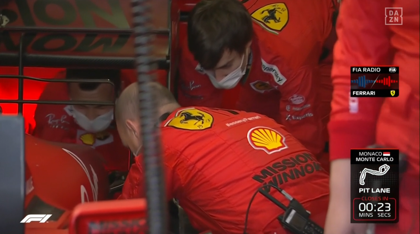 ピットレーンクローズ30秒前にフェラーリはFIAにグリッドにつけないと連絡。これでルクレールはピットレーン・スタートになる。