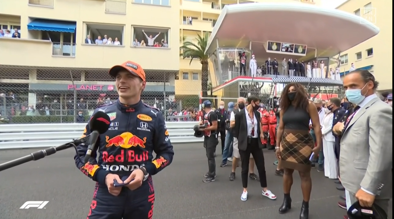 フェルスタッペンのインタビューの途中でセリーナもマイクの前に