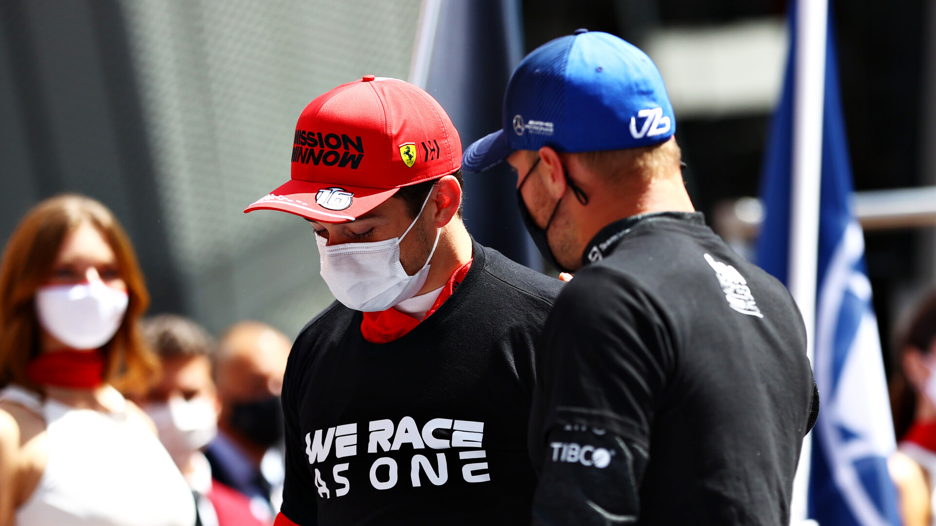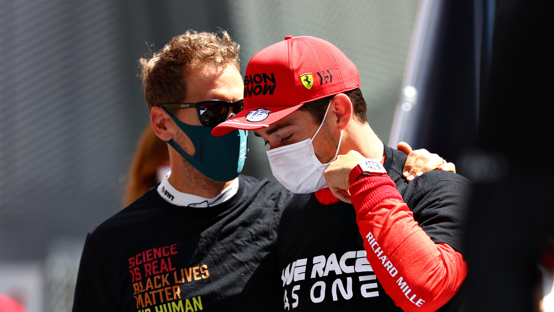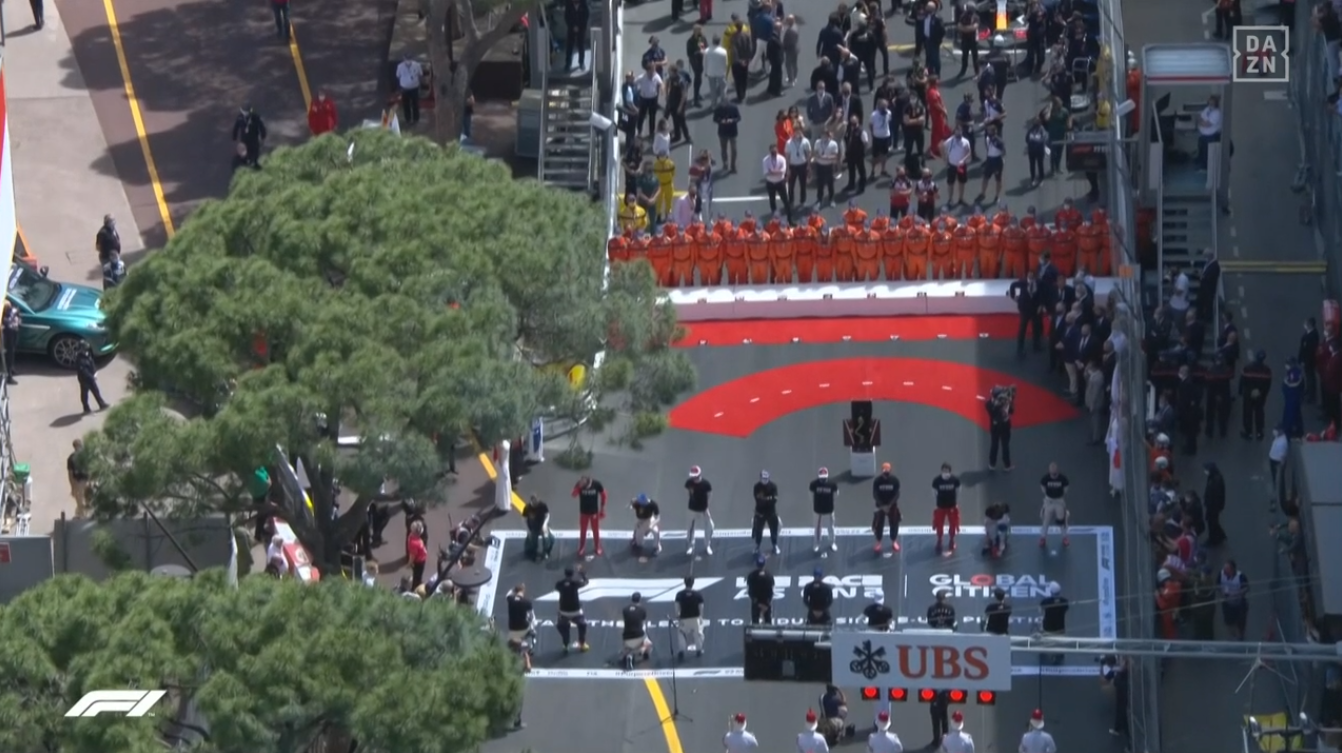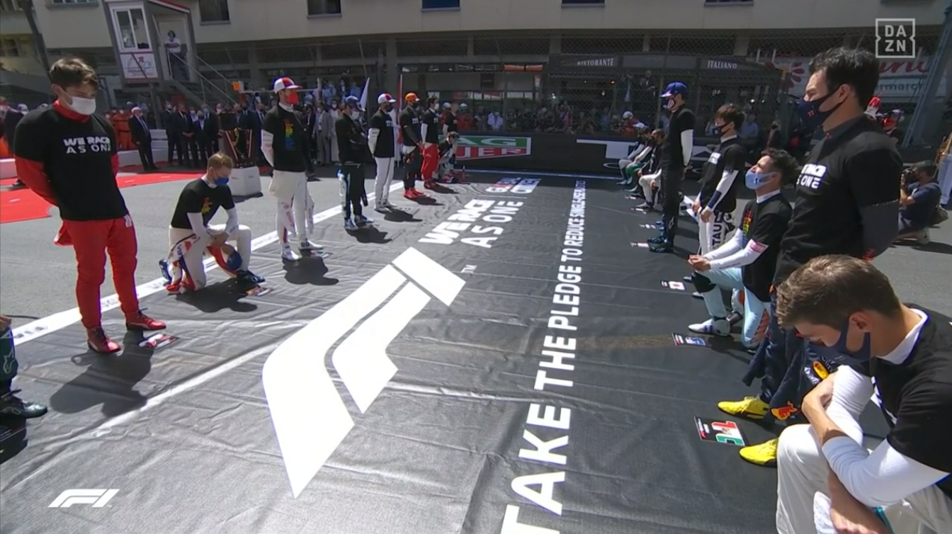 F1の統一イニシアチブ #WeRaceAsOne と人種差別へのメッセージ "End Racism"のドライバーのアピールスタイル。