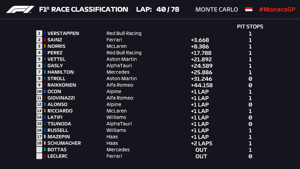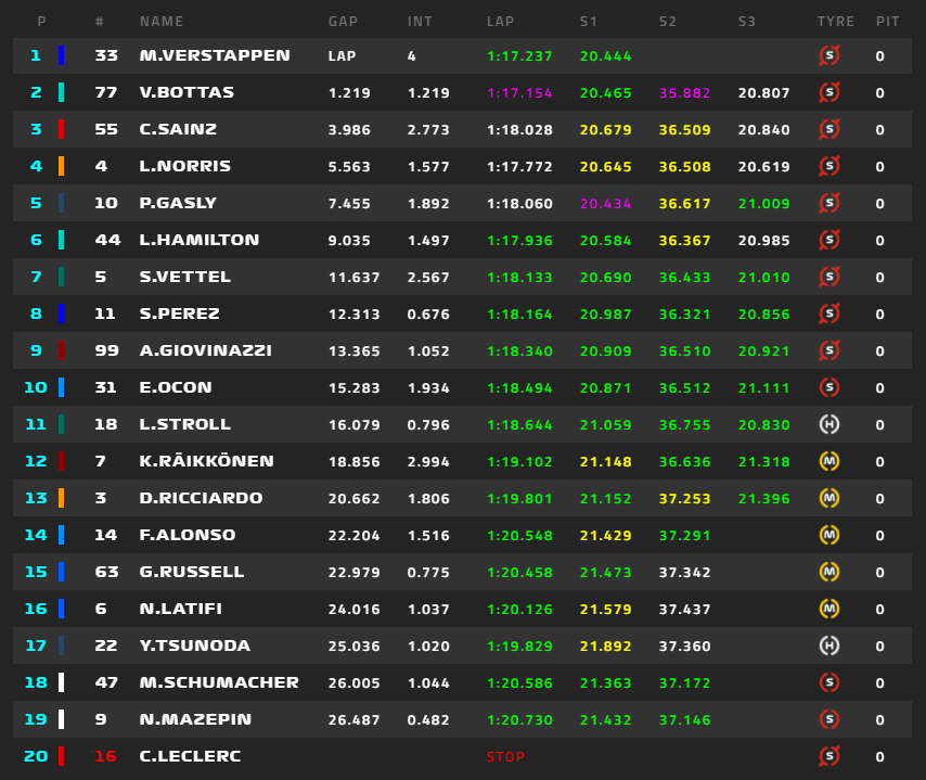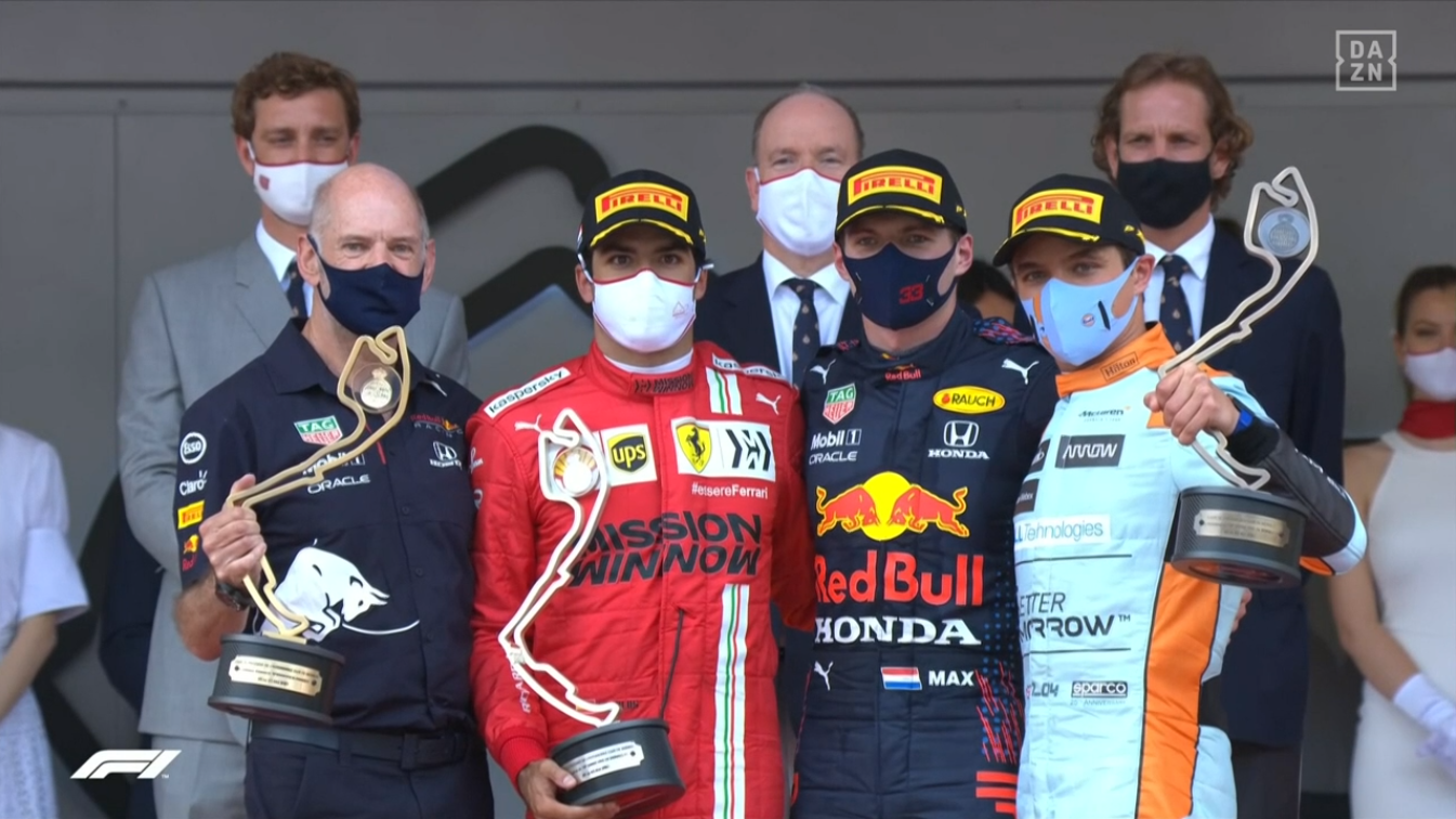 1位フェルスタッペン、2位ボタス、3位サインツ、4位ノリス