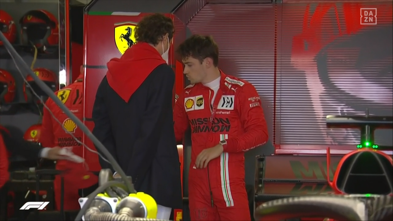ルクレール、マシンから降りている、イベントに参加のためだろうが、雰囲気からリタイヤだろう、いや決定的だ。公式発表はまだないが。