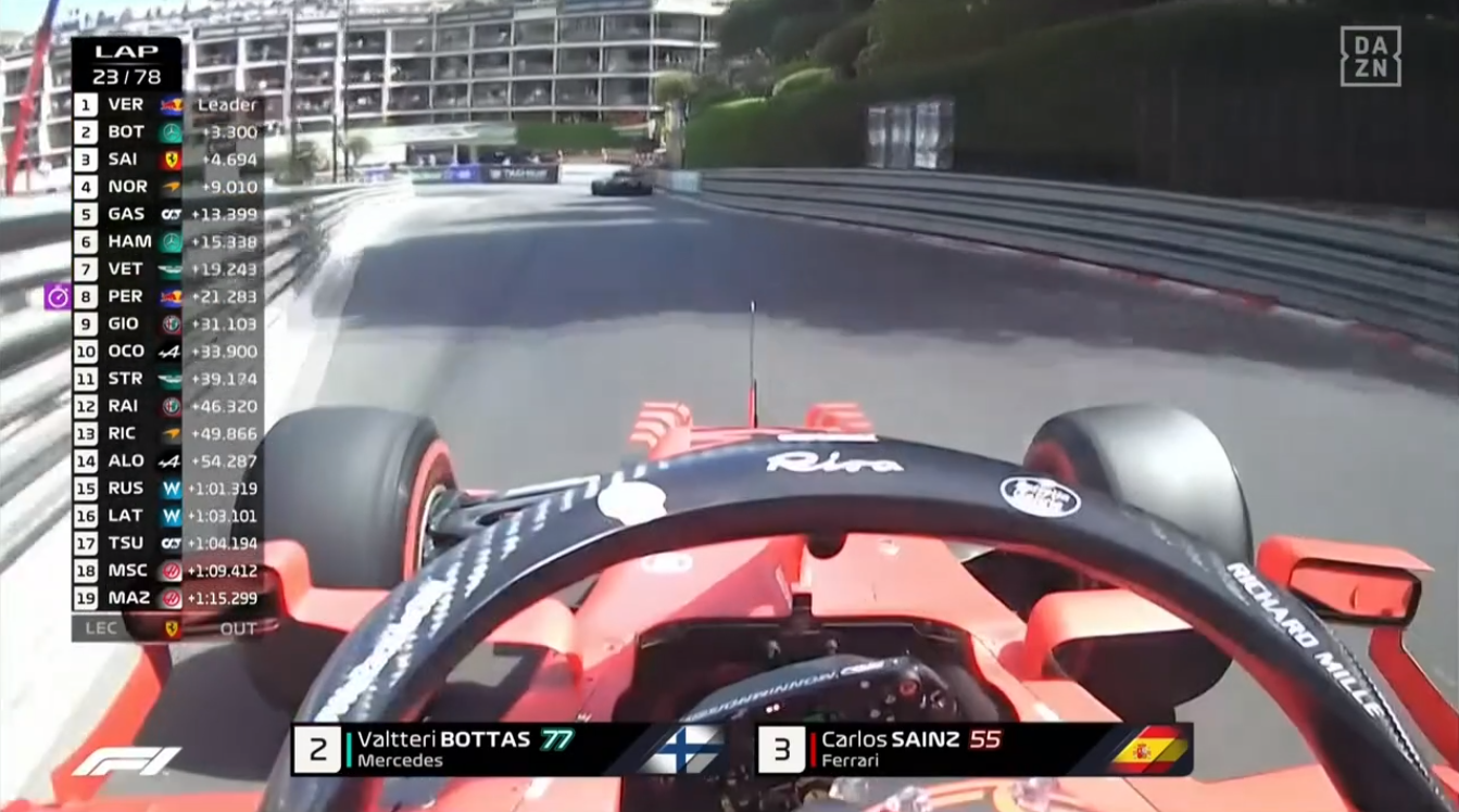 3位サインツが何度も無線で「前が遅い」とか「僕の方が速い」と訴えている