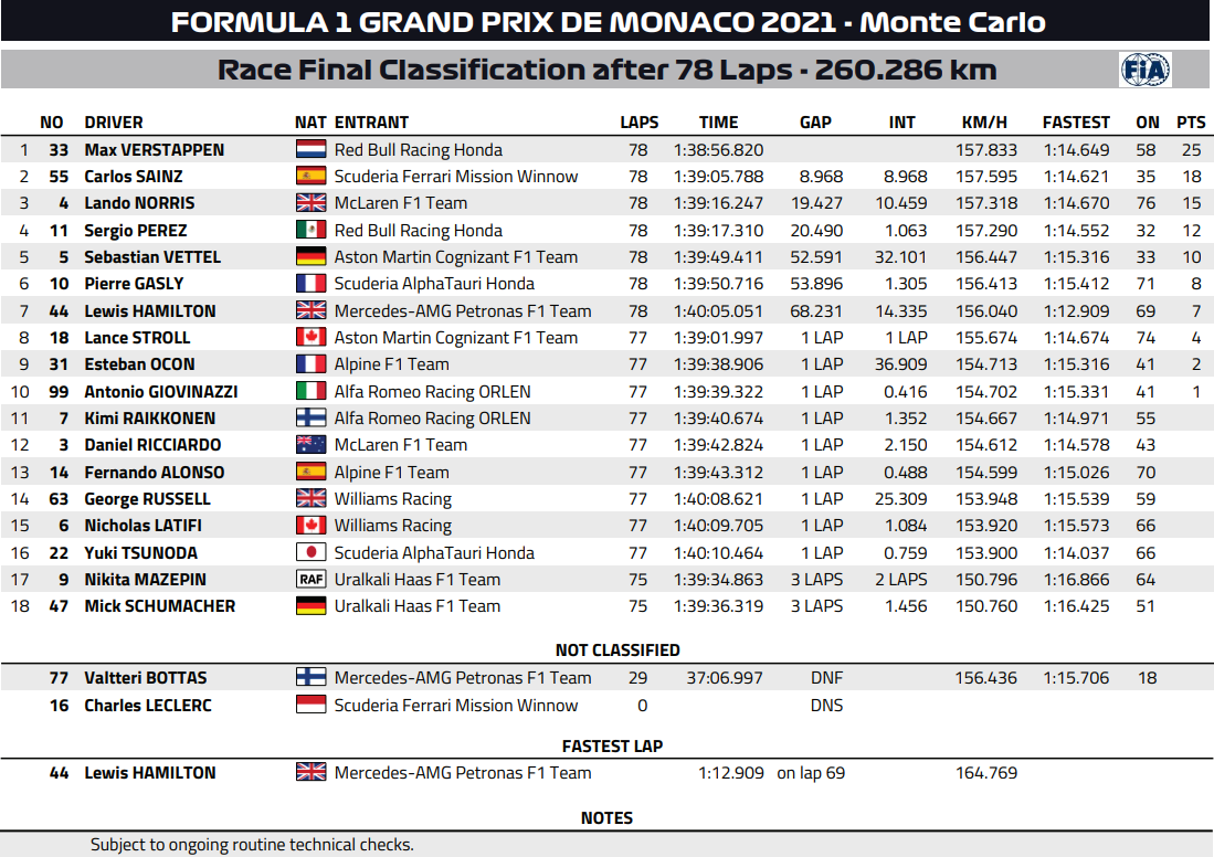 2021年F1第5戦モナコGP決勝レース