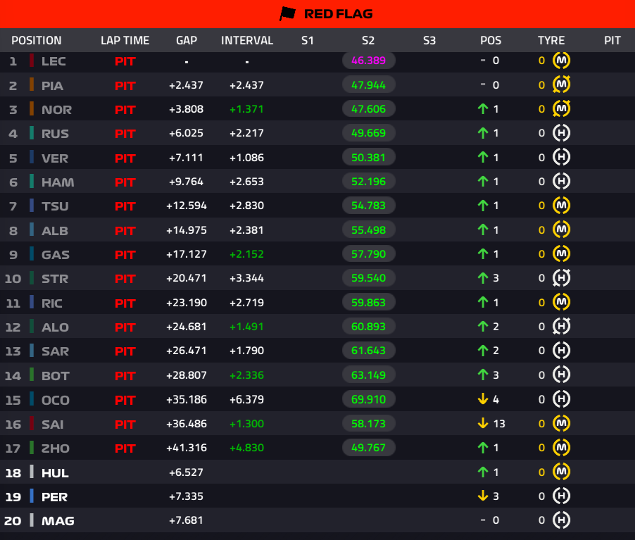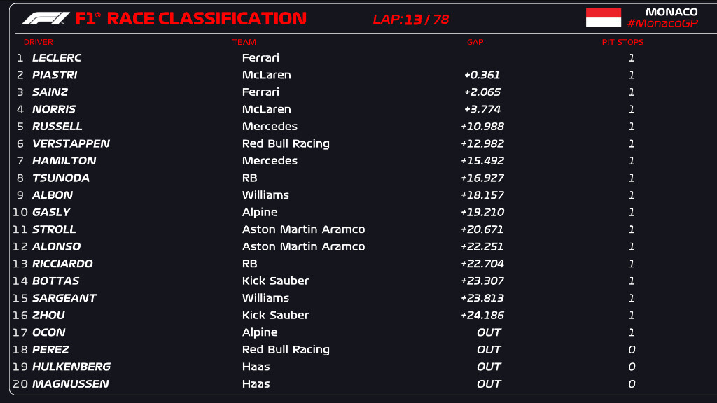 1周目の赤旗のため、つまらないモナコになりそうだ:タイヤ交換なく最後まで走行しそうだ。