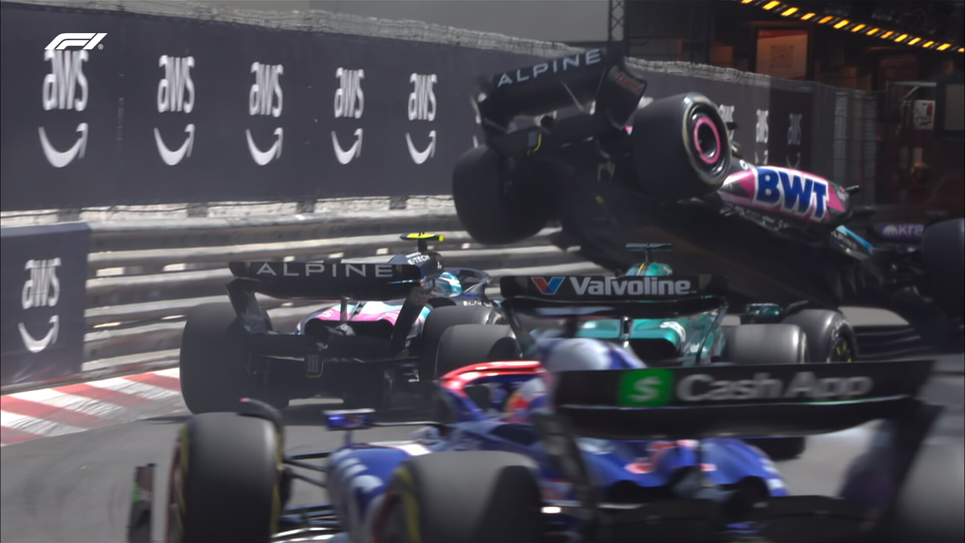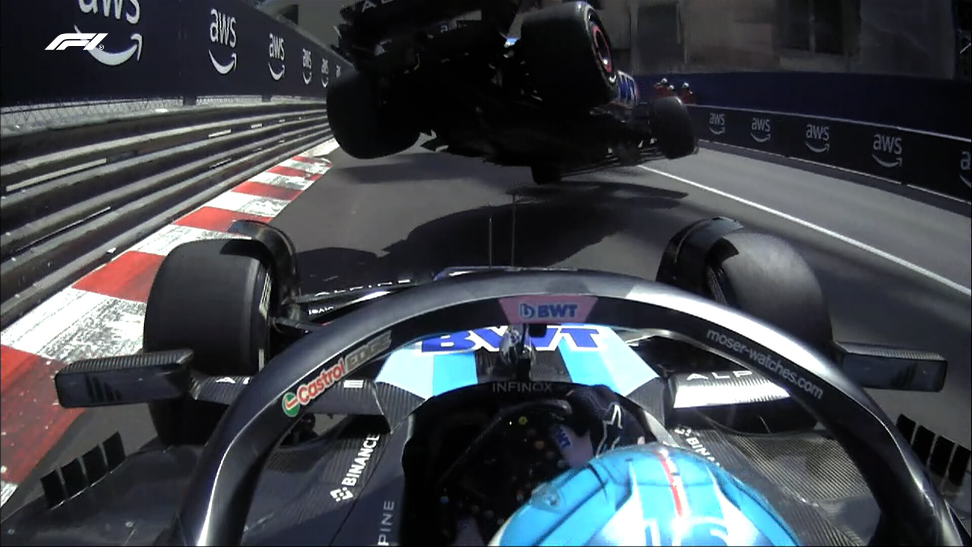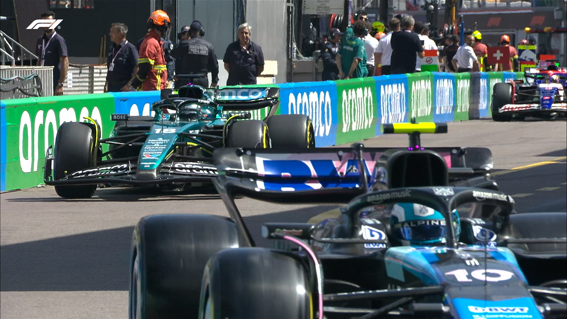 また、同時にチームメイトのオコンとガスリーが接触してオコンが吹っ飛んで、両車にダメージ。
