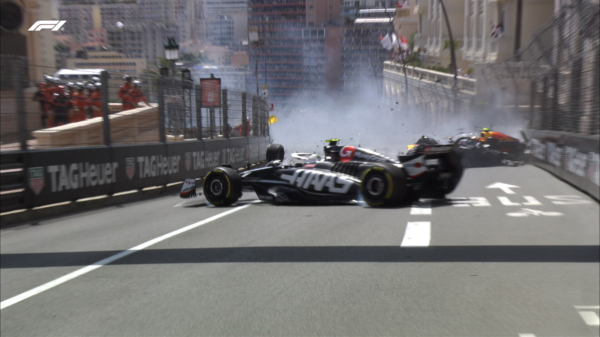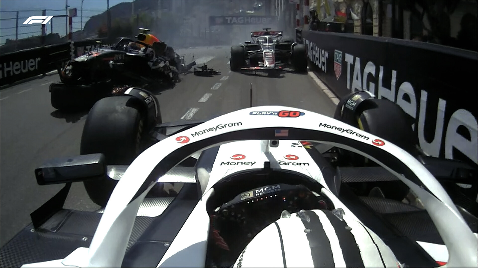 後ろではぺレス、ヒュルケンベル、マグヌッセンの3台がクラッシュ。