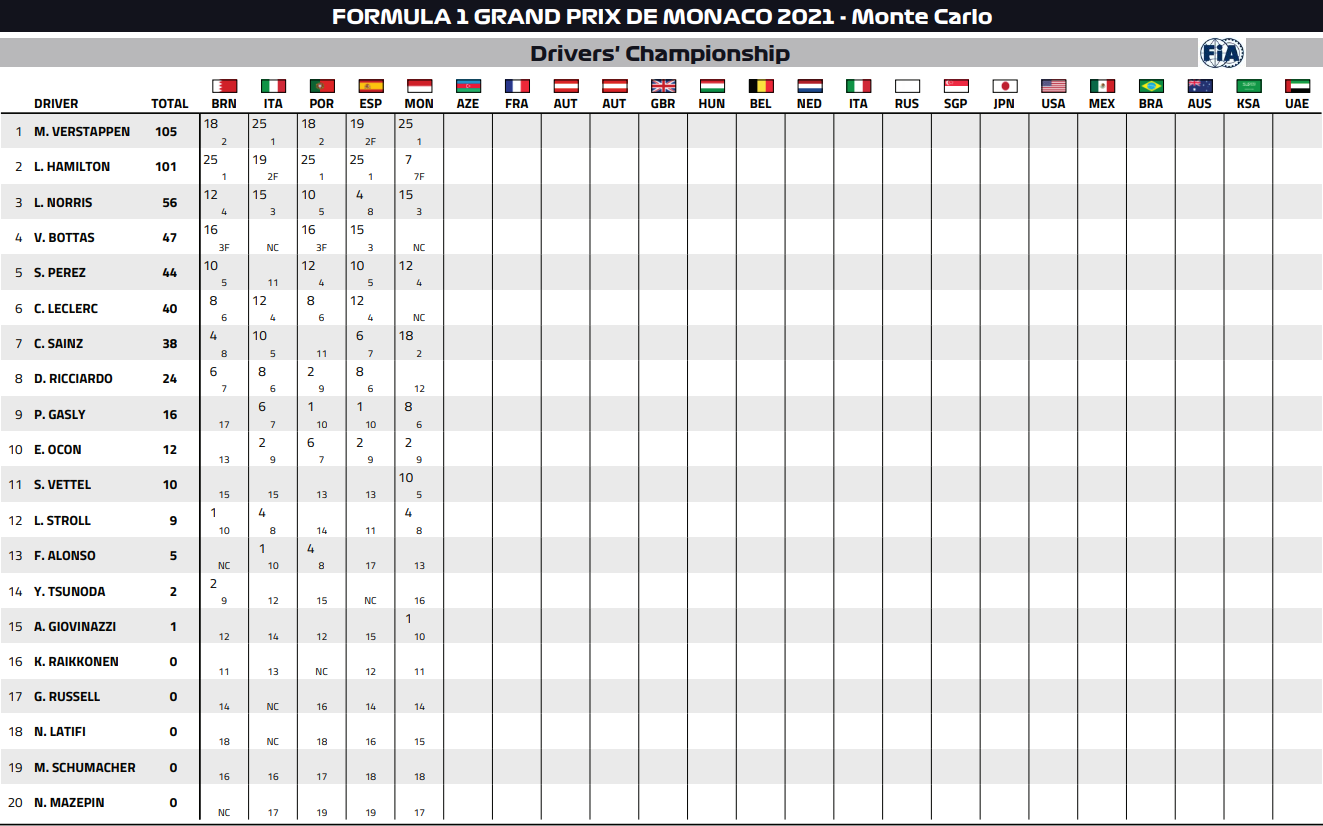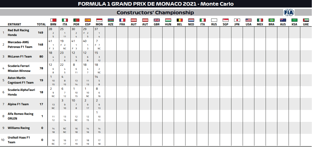 順位 得点 ドライバー (コンストラクター) 優勝回数