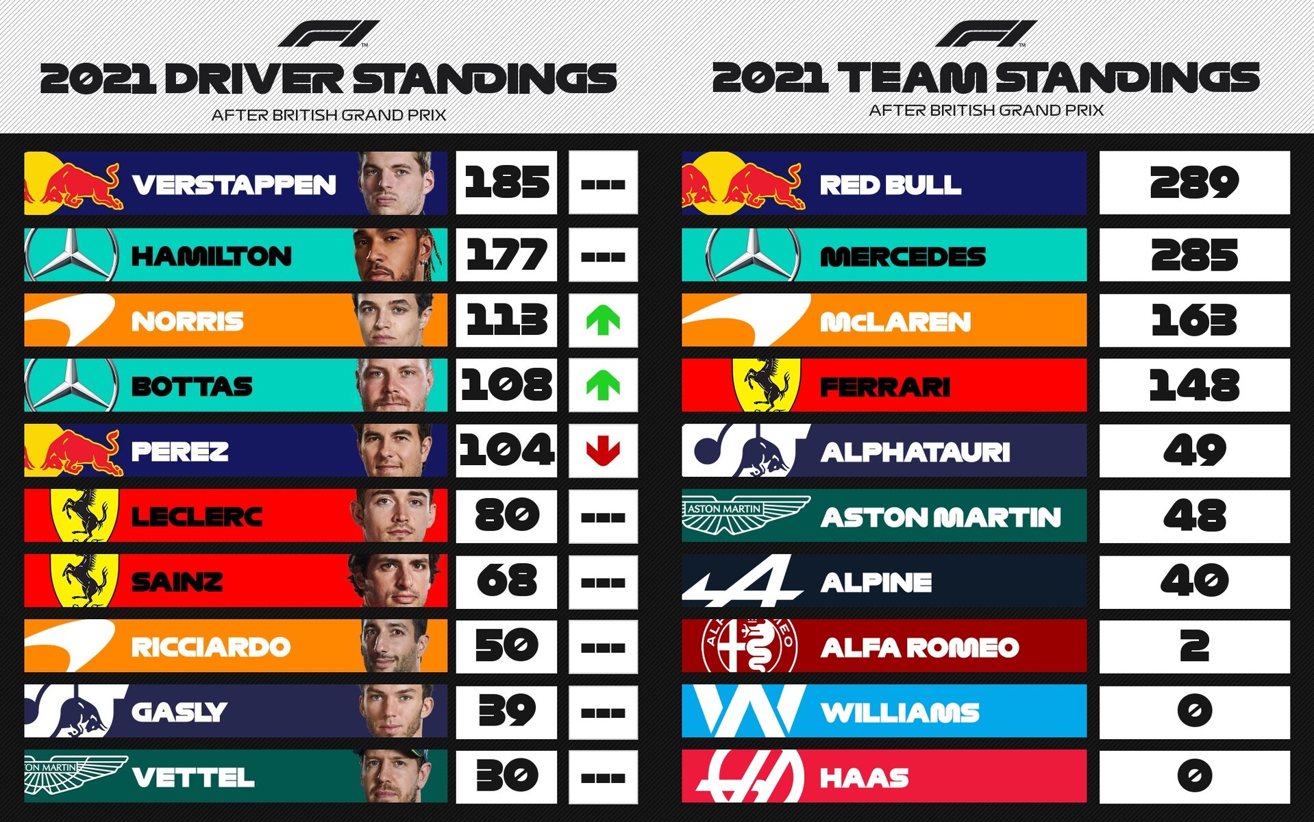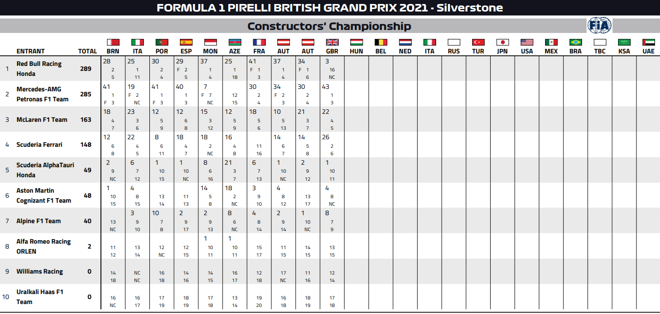 2021年F1コンストラクターズ・ランキング