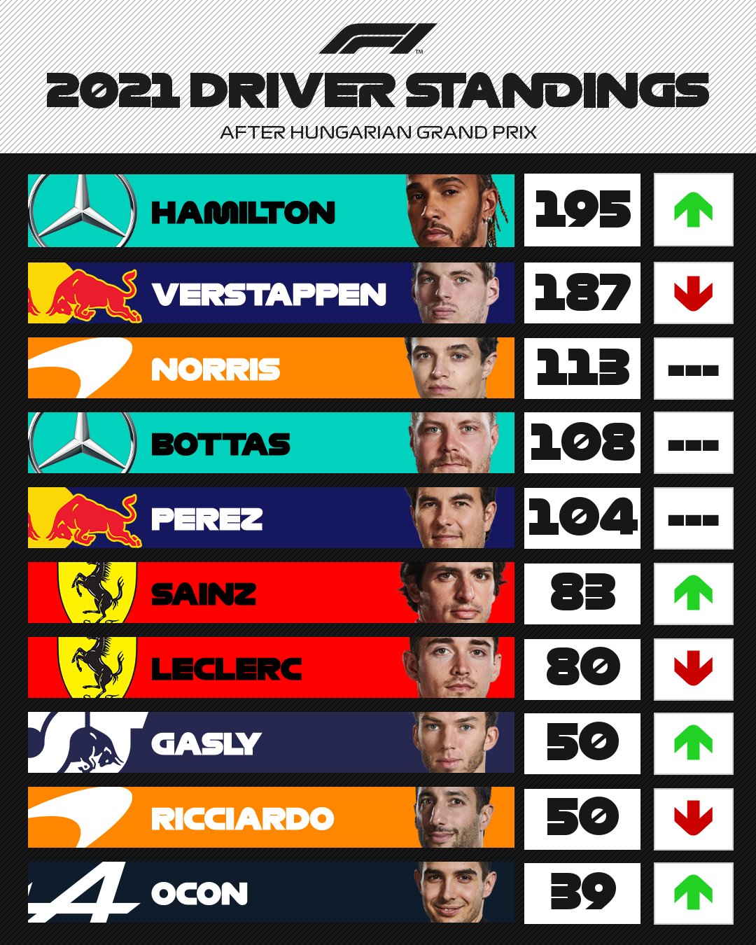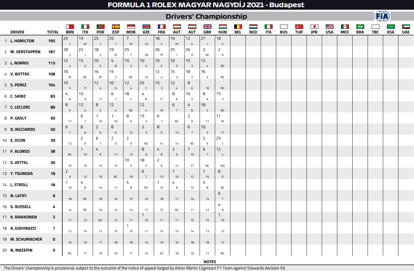 2021年F1ドライバーズ・ランキング