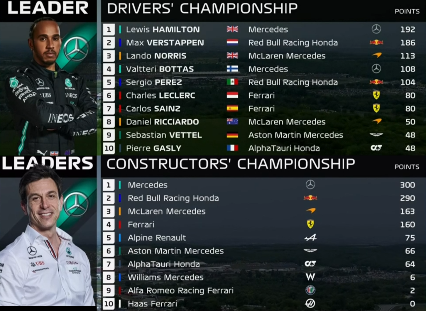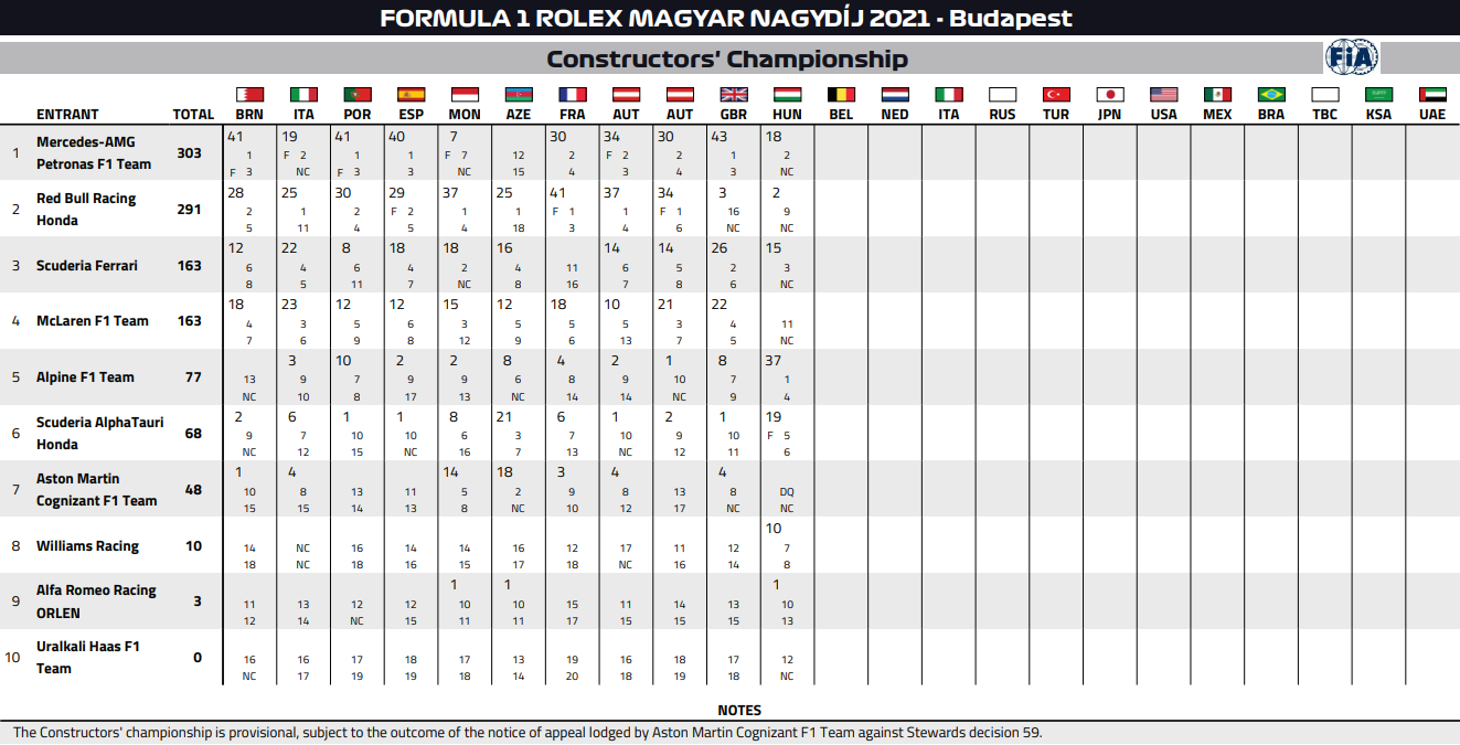 2021年F1コンストラクターズ・ランキング