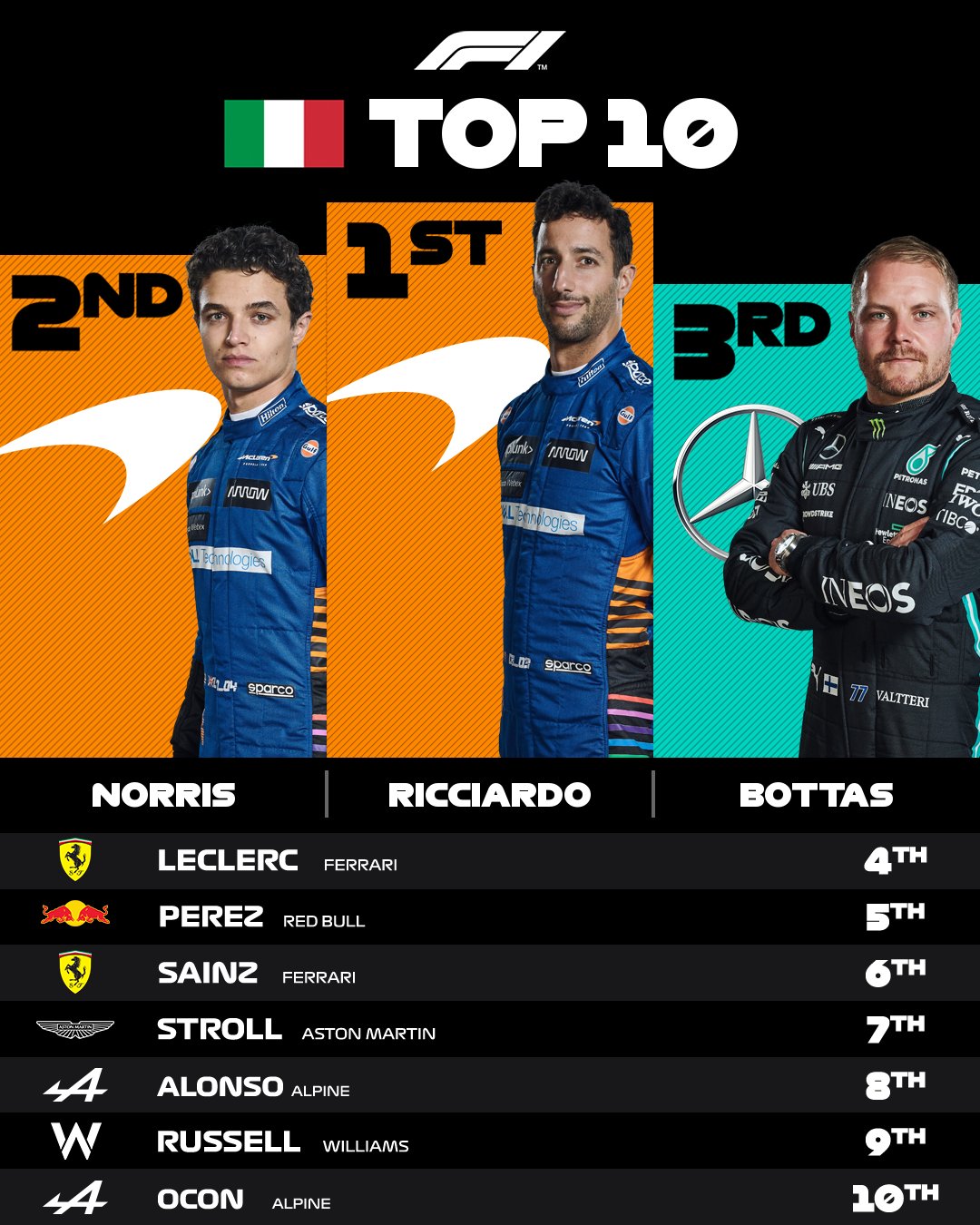 2021年F1イタリアGPトップ10
