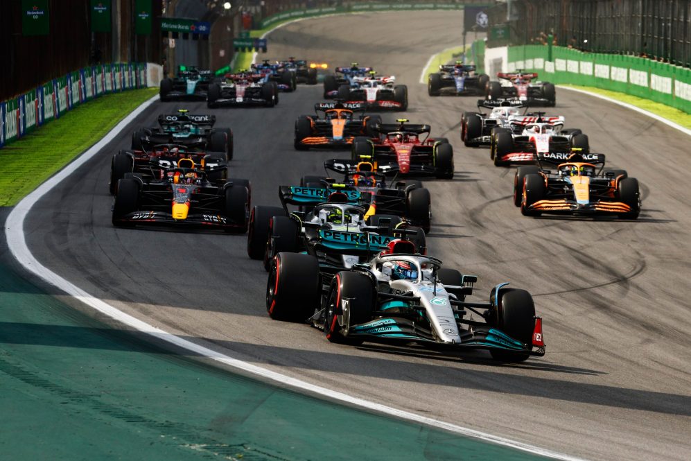 グランプリは、ラッセルが、ハミルトン、フェルスタッペン、ペレスの3人を従えて、スタートでトップを維持した。