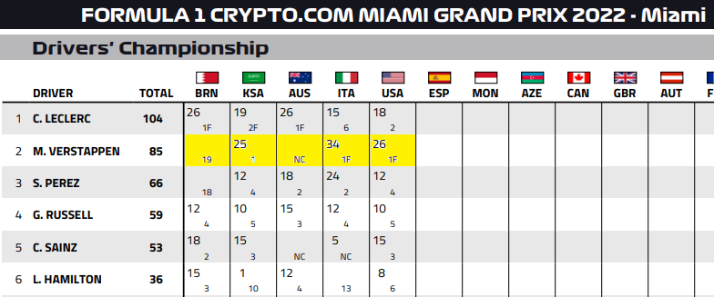開幕戦のバーレーンでは、レッドブルがリタイヤする前でも、シャルル・ルクレールがフェルスタッペンの挑戦を封じるほどフェラーリは速かった。マイアミまでにフェルスタッペンは予選のトラブルを乗り越え、ルクレールに追いつき、追い越し、引き離すことができた。最初のピットストップ直前、フェルスタッペンはフェラーリに対して8秒もの大差をつけていた。