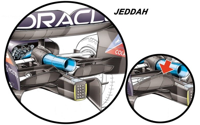 レッドブルは、サウジアラビアのトラックで要求される低ドラッグに対し、深さを浅くした下部ビーム・ウィングと、それに伴う新しい設計のリアウィング・エンドプレートのデザインを採用した。フェラーリは対照的に、フラップ部分の面積をわずかに縮小しただけで、標準のリア・ウイングを継続した。