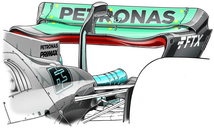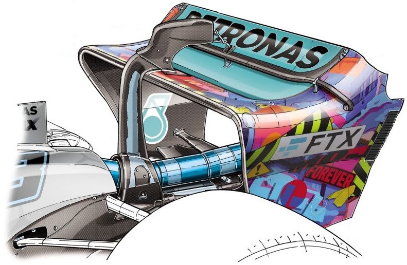 メルセデスはマイアミで低ダウンフォース・リアウイングを導入しており、バクーではこのウイングと、通常の曲線的なウイングとのどちらかを選択することになる。