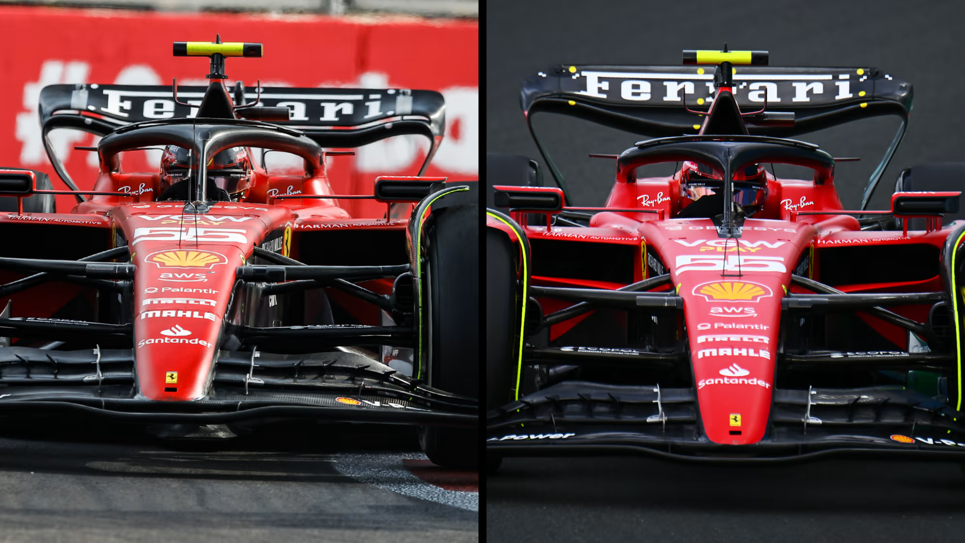 アゼルバイジャン(左)とサウジアラビア(右)におけるフェラーリSF-23のリアウイングのセットアップ。