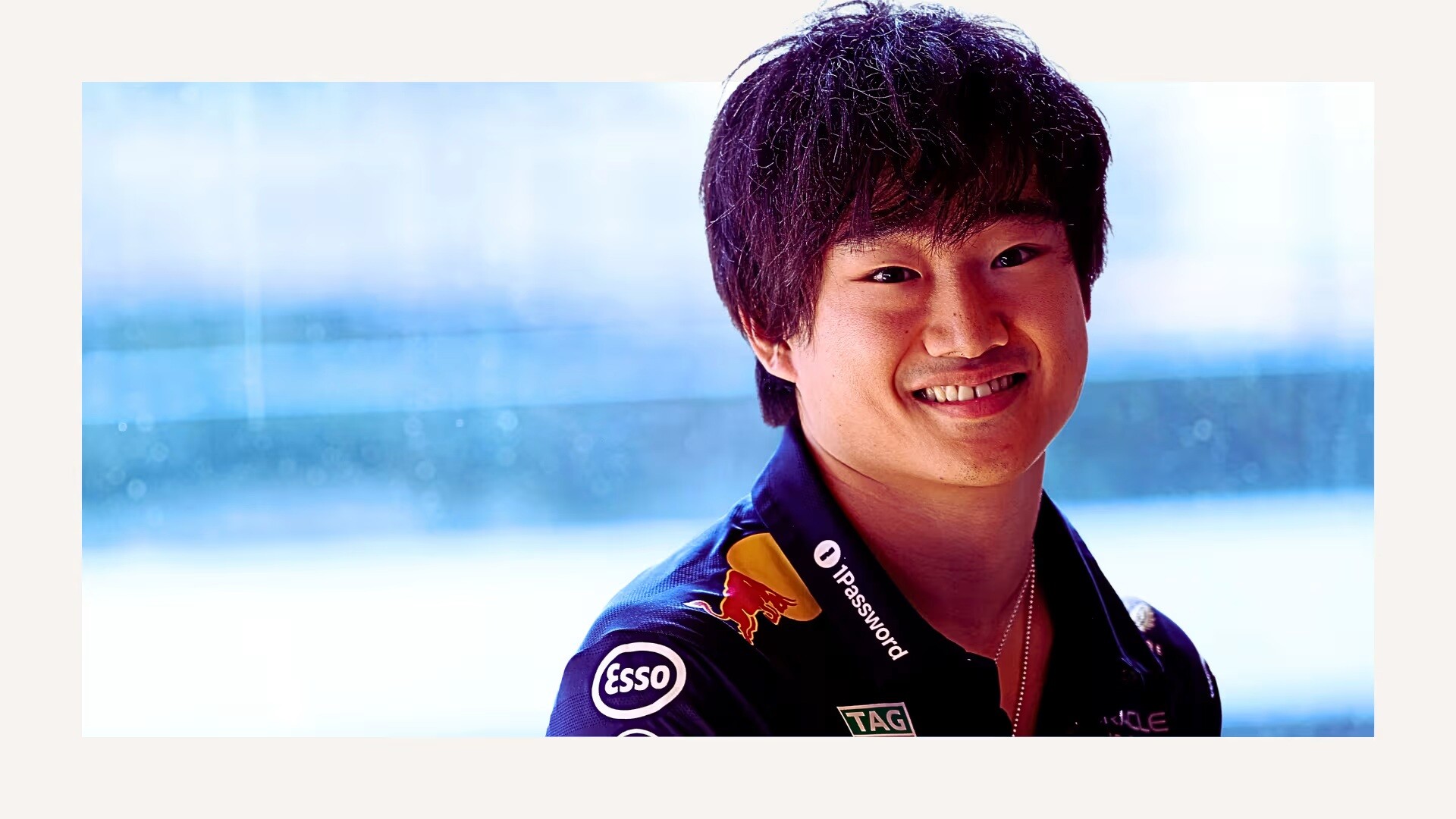 スパにおいて、我々はレッドブルのチームガレージの裏に隣接するエンジニアリング小屋のテラスで話をしたが、角田はリラックスした様子だった。
