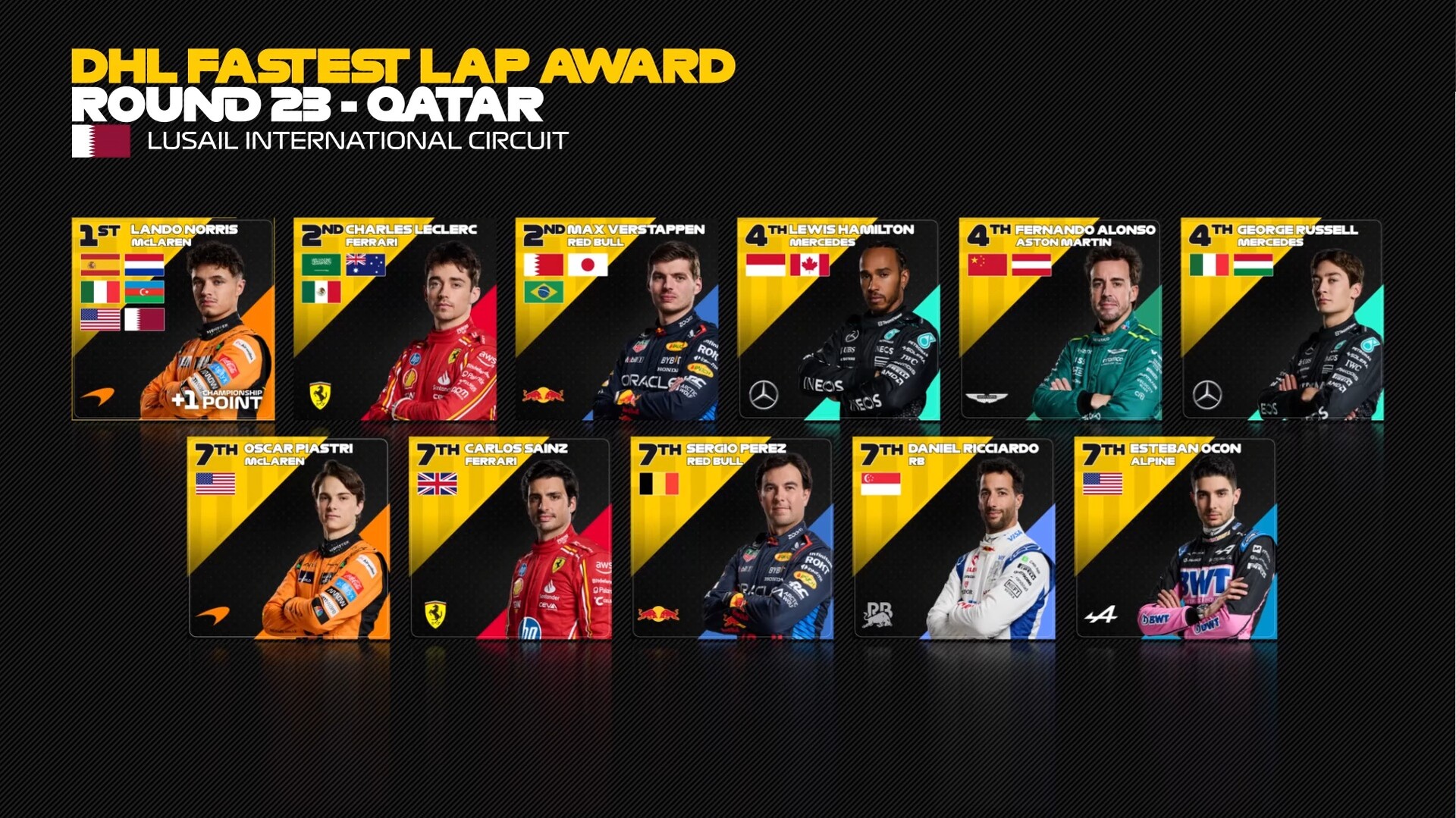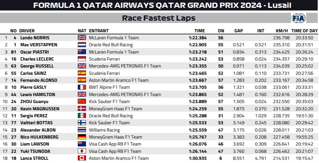 2024年F1カタールGP ファステストラップ(最速ラップタイム)