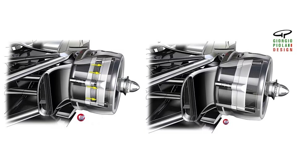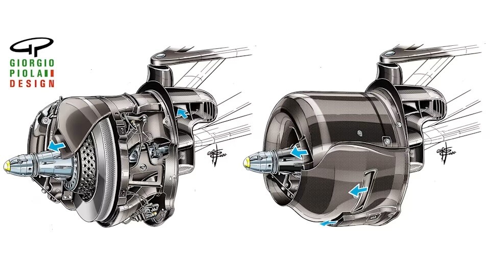 大型で重量のある1,000馬力のF1マシンが登場し、これまで以上に大きなダウンフォースがピレリのタイヤに供給されるようになると、それまでは偶発的だったブレーキダクトとドラムの効果が新たな重要性を帯びるようになった。