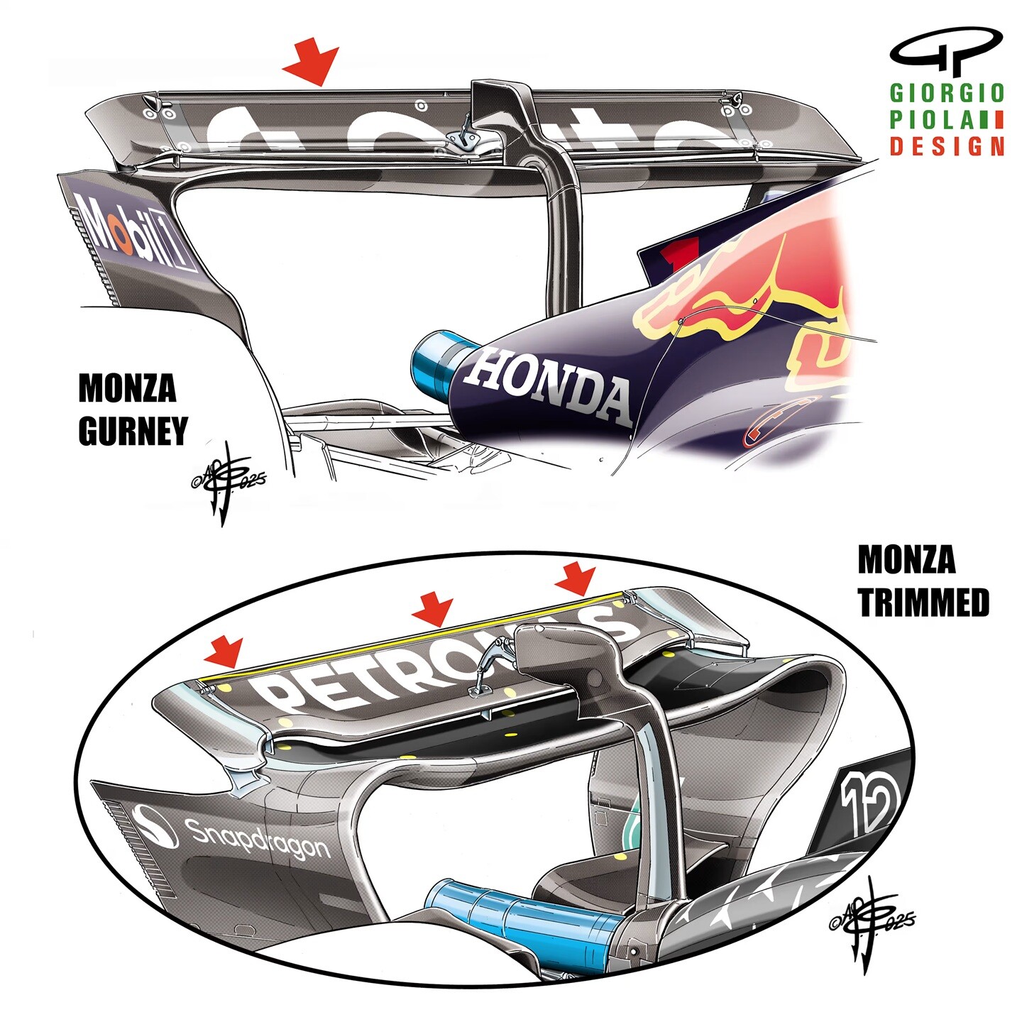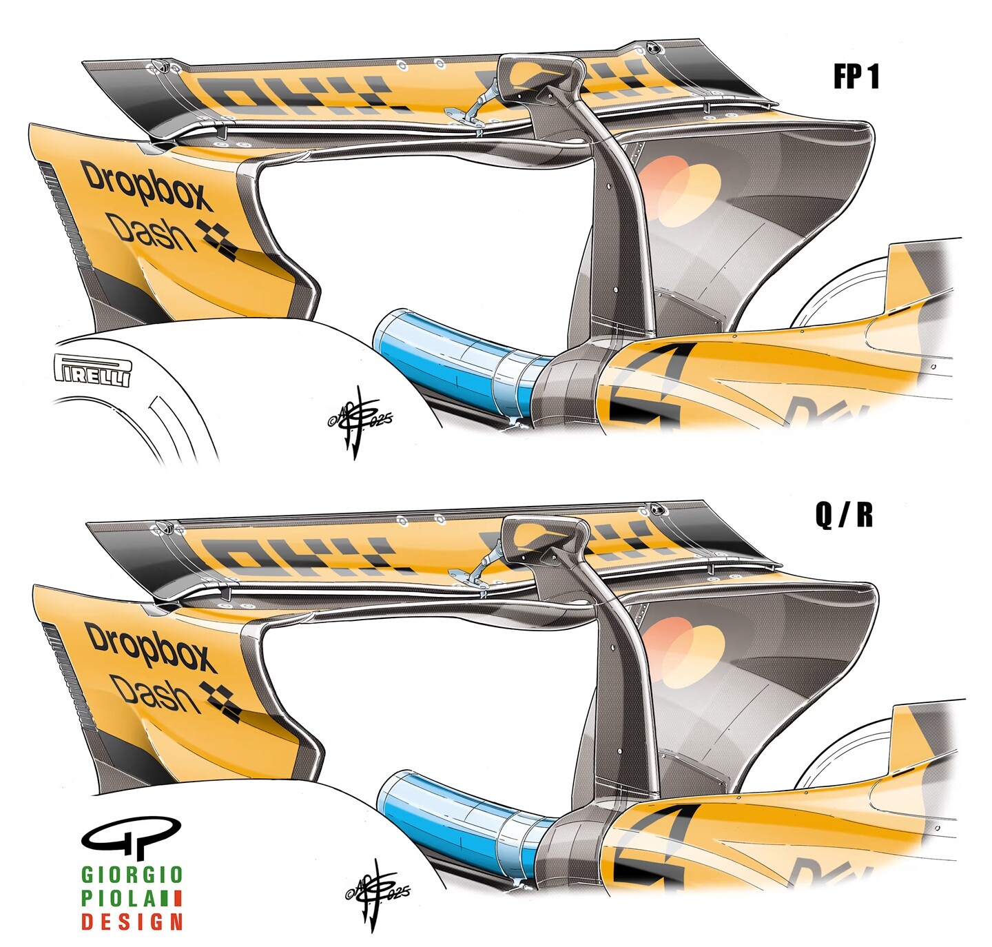 マクラーレンはFP1でオスカー・ピアストリのマシンにモンツァウイングの切り欠きバージョンを使用したが、その後標準バージョンに切り替え、ランド・ノリスと同じ仕様になった。