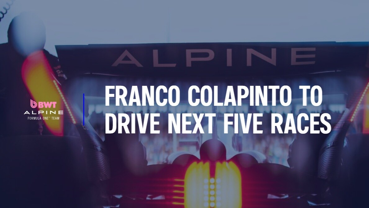 BWTアルピーヌ・フォーミュラワンチームは、7月のイギリスグランプリ前の新たな評価に先立ち、エミリア・ロマーニャグランプリからフランコ・コラピントがピエール・ガスリーとペアを組むことを発表する。