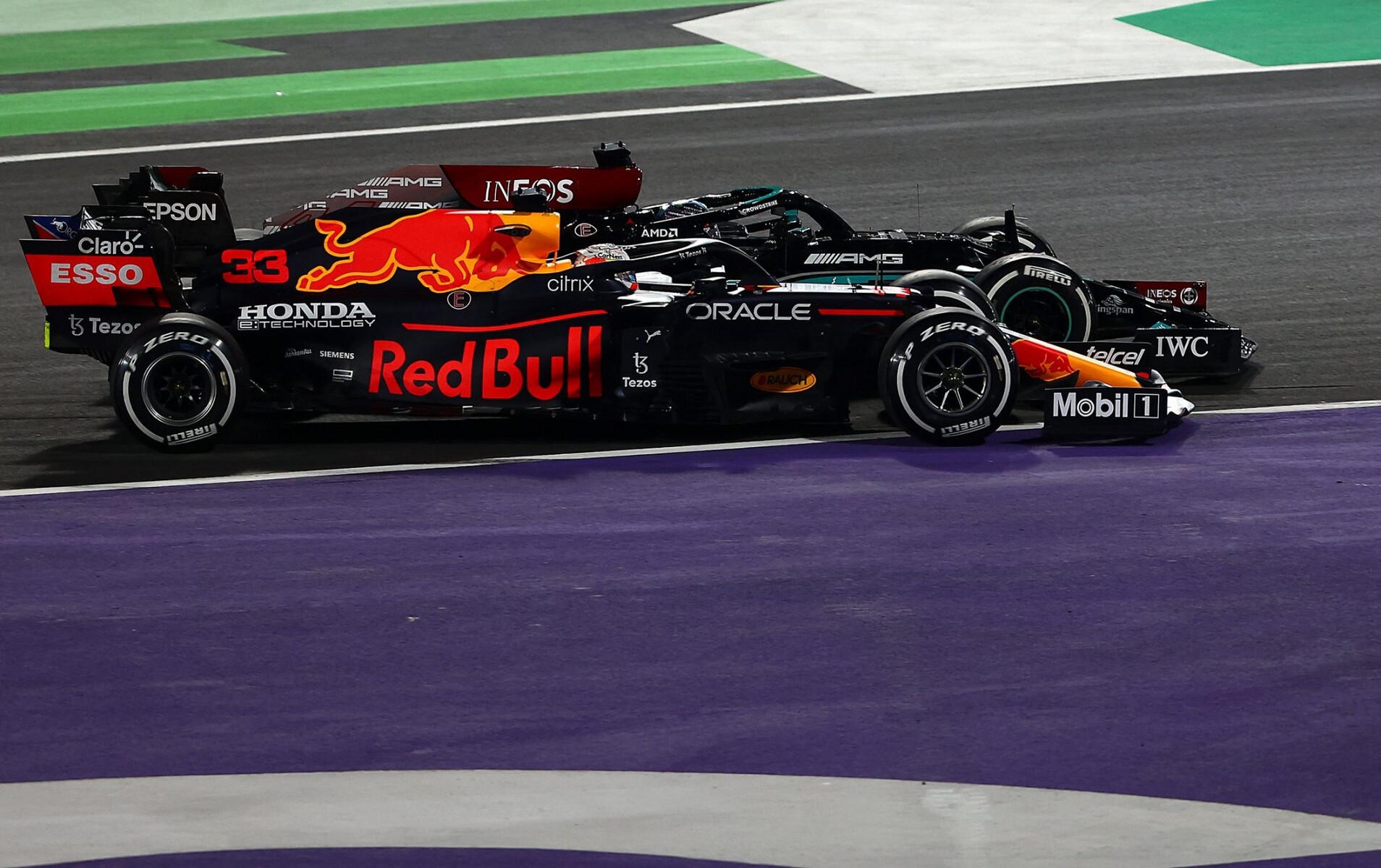 そのため、フェルスタッペンは大幅に減速し、ハミルトンがレッドブルに追突した。