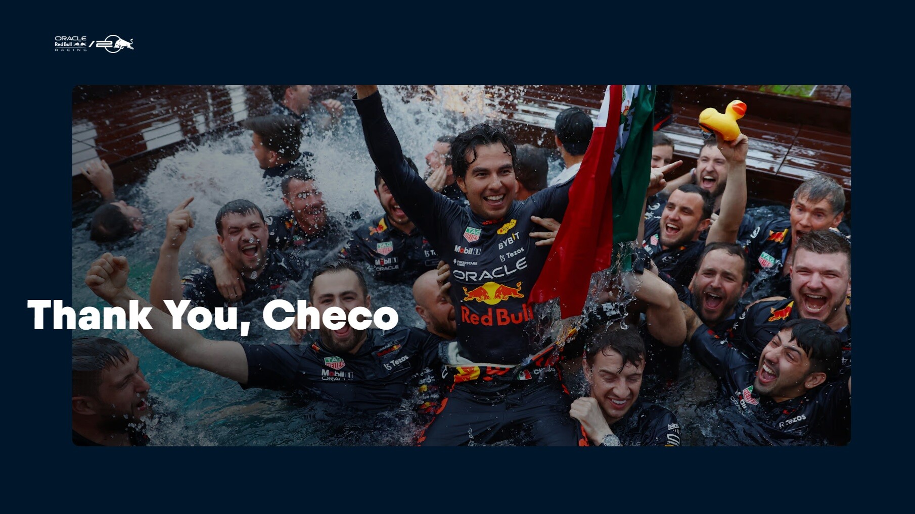 「僕は、オラクル・レッドブルレーシングで過ごした過去4年間、これほど素晴らしいチームでレースをする機会にとても感謝している。レッドブルで走ったことは忘れられない経験であり、一緒に達成した成功をこれからも大切にしていくつもりだ。僕らは記録を打ち破り、素晴らしいマイルストーンを達成し、その過程で多くの素晴らしい人々に出会うことができた。チームの全ての人々、マネジメント、エンジニア、メカニック、ケータリング、ホスピタリティ、キッチン、マーケティング、コミュニケーション、そしてミルトン・キーンズの全員に心から感謝する。皆さんの未来に幸多かれと願っている。また、チームメイトとしてマックスと一緒にレースをすることができ、成功を共にできたことは光栄だった。世界中のファン、特にメキシコのファンの皆さん、毎日のように変わらぬサポートを本当にありがとう。またすぐに会えるだろう。*そして、忘れないでほしい…決して諦めないことを」<* And remember…Never give up>